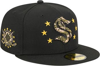 Show your support for the Seattle Kraken while honoring our troops with this Military Appreciation Digital Camo Stars 59FIFTY Fitted Hat by New Era. The structured fit and high crown provide a classic look, while the flat bill adds a modern touch. Embroidered team graphics and stars make this patriotic hat a must-have for your Seattle Kraken fan collection.