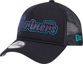 Rock a vintage look while repping the Seattle Mariners with this New Era Retro Bold A-Frame Trucker 9FORTY Adjustable Hat. This hat features a bold, heat-sealed rubber applique of the team's script on the front panel, making a statement whether you're at a Seattle Mariners game or out on the town. With its unique A-Frame design merging the front two crown panels, this hat creates a high-profile, pinched shape for an unmistakable retro look.