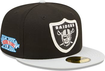 Men's New Era Black/Silver Las Vegas Raiders Super Bowl XVIII Letterman 59FIFTY Fitted Hat