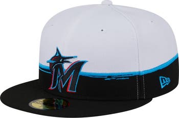 Men's New Era Black/White Miami Marlins Paint Stroke 59FIFTY Fitted Hat