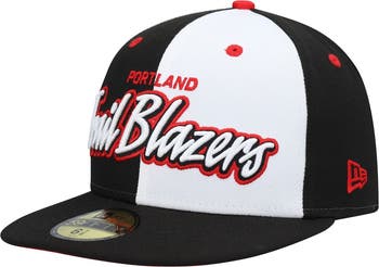 Men's New Era Black/White Portland Trail Blazers Script Pinwheel 59FIFTY Fitted Hat