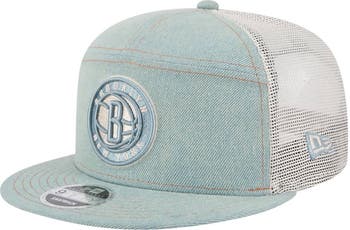 Rep your Brooklyn Nets in classic style with this Adventure Denim Split Panel 9FIFTY Snapback Trucker Hat from New Era. It features breathable mesh on the mid and rear panels, while the front section boasts contrast stitching and a unique split triple-panel design for a touch of extra style. With its high crown and structured fit, this hat offers a modern and comfortable feel, perfect to pair with your favorite jeans when cheering on the Brooklyn Nets at the arena.