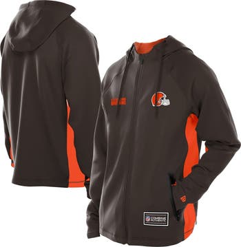 Stay warm while repping your favorite NFL franchise with this Cleveland Browns Combine Authentic Raglan Scuba Full-Zip Hoodie from New Era. With raglan sleeves and a drawstring hood design, this midweight jacket provides effortless mobility and a personalized fit that keeps you warm without getting in your way. The team logo and wordmark on the front proudly display your allegiance to the Cleveland Browns, making this a must-have for any dedicated fan.
