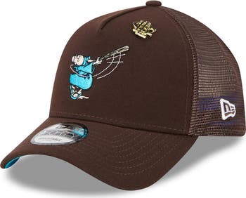 New Era partners with Big League Chew to bring San Diego Padres fans a fun new hat for game day.The A-Frame 9FORTY Adjustable Trucker Hat features a unique design, with a high-profile pinched shape thanks to the merged front crown panels and mesh mid and rear panels for added breathability. With embroidered graphics that pop with raised details, a contrast-color undervisor and a Big League Chew pin, this hat is sure to add the perfect stylish finish to any outfit.
