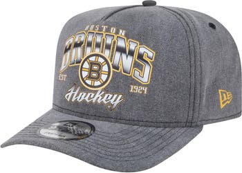 Men's New Era Charcoal Boston Bruins Throwback Washed A-Frame Pre-Curved 9FIFTY Snapback Hat