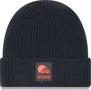During chilly days, stay fired up to cheer on the Cleveland Browns in this 2025 Sideline Cold Weather Cuffed Knit Hat by New Era. It features the same versatile design the team wears for an authentic piece of gear. This Cleveland Browns hat is crafted from a blend of merino wool and polyester for superior warmth and comfort.
