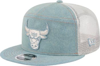 Rep your Chicago Bulls in classic style with this Adventure Denim Split Panel 9FIFTY Snapback Trucker Hat from New Era. It features breathable mesh on the mid and rear panels, while the front section boasts contrast stitching and a unique split triple-panel design for a touch of extra style. With its high crown and structured fit, this hat offers a modern and comfortable feel, perfect to pair with your favorite jeans when cheering on the Chicago Bulls at the arena.