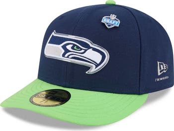 Celebrate the future of Seattle Seahawks football with this 2026 NFL Draft Pre-Curved 59FIFTY Fitted Hat from New Era. Featuring a structured fit and high crown, this hat delivers a classic, confident look, while the pre-curved visor adds a street-ready edge. An embroidered Seattle Seahawks logo with a metallic-effect outline on the crown and a removable 2026 NFL Draft pin make this piece both a collector's item and an eye-catching display of team spirit. The team-themed lining on the front panels provides a luxurious touch, ensuring you're always winning in style.