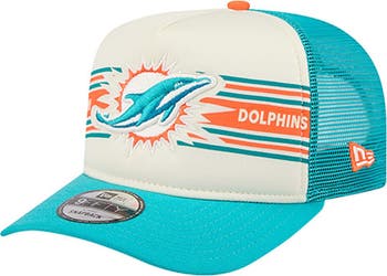 Show your Miami Dolphins pride with this Banner A-Frame 9FIFTY Trucker Snapback Hat from New Era.The high-profile pinched crown and single-panel front give this cap a bold, modern look, while the embroidered team logo on the front proudly displays your Miami Dolphins pride. Mesh mid and rear panels provide maximum breathability and comfort, making it the perfect choice for those hot game days.