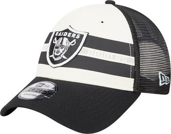 Men's New Era Cream/Black Las Vegas Raiders Team Stripe Trucker 9FORTY Snapback Hat