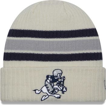 Gallop down memory lane with this Dallas Cowboys Vintage cuffed knit hat from New Era. It features the Dallas Cowboys logo embroidered on soft fabric and coordinating stripes. The stretch fit provides a snug feel and cozy warmth.