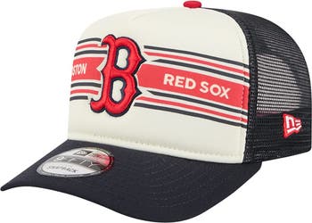 Men's New Era Cream/Navy Boston Red Sox Banner A-Frame 9FIFTY Trucker Snapback Hat