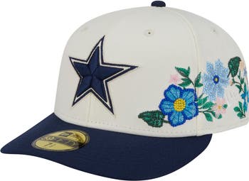 Enjoy warm summer days at the backyard BBQ in this Dallas Cowboys Tonal Florals Fitted Hat from New Era. This stylish and iconic 59FIFTY hat showcases the team logo embroidered on the front crown, complemented by a unique floral stitching design on the left panels, perfect for rocking on vacation or while enjoying a weekend outdoors. The high crown and structured fit provide a modern and comfortable feel, making it an ideal choice for any Cowboys fan looking to elevate their game-day style.