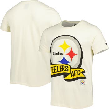 The New Era Cream Pittsburgh Steelers Sideline Chrome T-shirt is a must-have for any devoted Pittsburgh Steelers fan. Its crew neck and rib-knit collar provide a comfortable fit, while the screen-printed graphics proudly display your allegiance to the Steelers. Made from durable cotton, this t-shirt is perfect for game day or any day you want to show your support for the Pittsburgh Steelers.