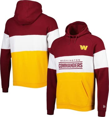 The Men's New Era Gold Washington Commanders Colorblock Current Pullover Hoodie is the perfect way to show your support for the Washington Commanders. Made from a comfortable cotton and polyester blend, this midweight hoodie features a colorblock design and screen-printed graphics that proudly display your team pride. The front pouch pocket is perfect for storing your essentials, while the rib-knit cuffs and waist hem provide a snug fit. Whether you're cheering on the Commanders at the stadium or just relaxing at home, this hoodie is sure to keep you comfortable and stylish.