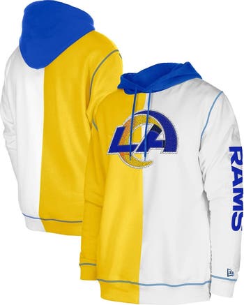 Men's New Era Gold/White Los Angeles Rams Third Down Split Raglan Pullover Hoodie