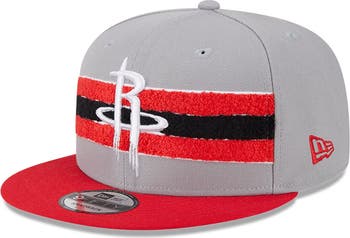 Pay a nod to your NBA favorites with a distinct look up top in the form of this Houston Rockets Chenille Band 9FIFTY hat from New Era. The embroidered Houston Rockets logo on the front panels rests atop team-colored Chenille strips that span the crown for a cozy-looking dose of team spirit. A classic flat bill finishes off this bold cap for an ideal street-ready look, while the snap closure makes securing the perfect fit easy.
