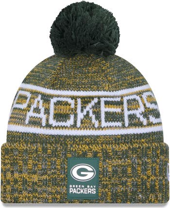 Men's New Era Green Green Bay Packers 2025 Sideline Cold Weather Cuffed Knit Hat with Pom