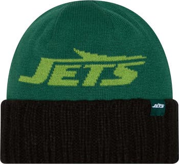 Stay warm while representing your New York Jets with this New Era Oversize Cuffed Knit Hat. This New York Jets knit hat boasts a chunky, oversized cuffed design, offering extra warmth and a trendy look for those chilly game days. Featuring woven New York Jets graphics, this hat lets you rep your team with a unique and stylish flair.