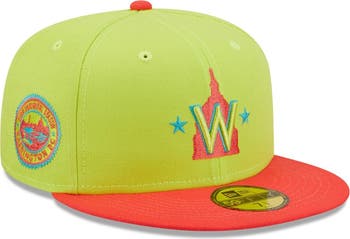 Stand out in Washington Nationals style with this 2008 Inaugural Season Cyber Highlighter 59FIFTY hat from New Era. It features striking team graphics over a red and green design. The blue undervisor gives this fitted Washington Nationals hat an extra dash of detail.