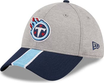 Men's New Era Heather Gray/Navy Tennessee Titans Striped 39THIRTY Flex Hat