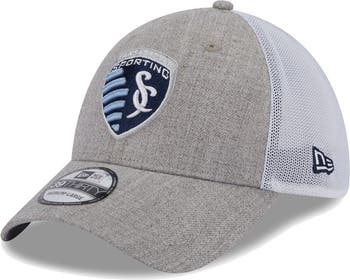 Men's New Era Heather Gray/White Sporting Kansas City 39THIRTY Trucker Flex Hat