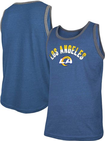 Get the ultimate Los Angeles Rams look for the summer with this Ringer tri-blend tank top from New Era. This tank features a heathered design and is highlighted by bold Los Angeles Rams graphics across the chest. Throw this on with some swim trunks and sunglasses and you have the perfect day in sun attire.