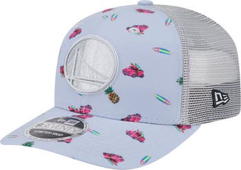 Cruise into getaway mode while repping your Golden State Warriors with this Adventure Aloha Pattern 9SEVENTY Stretch-Snap Hat from New Era. The 9SEVENTY provides a modern adjustable fit and versatile style with its structured crown, semi-curved visor, and performance stretch sweatband. This hat features fun sublimated surfboards and pineapples across the front panels and bill, making it perfect for any Golden State Warriors fan looking to add a vacation theme to their gameday attire.