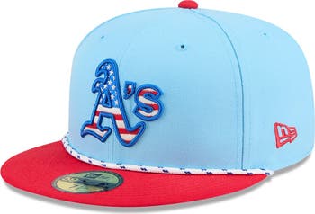 Men's New Era Light Blue/Red Athletics 2025 Fourth of July 59FIFTY Fitted Hat