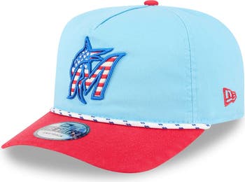 Men's New Era Light Blue/Red Miami Marlins 2025 Fourth of July Golfer Snapback Hat