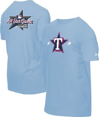 Get ready for the 2025 All-Star Game with this Texas Rangers 2025 MLB All-Star Game Workout T-Shirt from New Era. Crafted from luxuriously soft cotton fabric, this tee provides ultimate comfort and breathability, perfect for those intense workouts or casual wear. The printed team graphics on the front chest and the 2025 All-Star Game logo on the back showcase your Texas Rangers pride and excitement for the upcoming event.