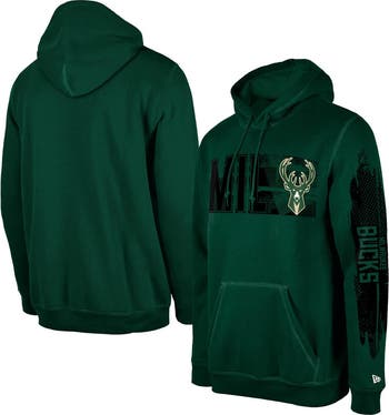 Men's New Era Milwaukee Bucks Hunter Green Tip-Off Collection Pullover Hoodie