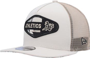 New Era Men's New Era Natural Oakland Athletics Retro Beachin' Patch A-Frame Trucker 9FIFTY Snapback Hat, Alternate, color, Natural