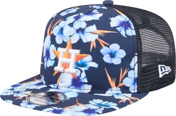 Take your Houston Astros fandom on an adventure with this New Era Adventure Pattern Golfer Trucker Snapback Hat. The Golfer silhouette gives this cap a retro look and feel thanks to its semi-structured build, pinched crown and flat visor. With an embroidered Houston Astros logo and sublimated floral print, this cap is as stylish as it is comfortable.