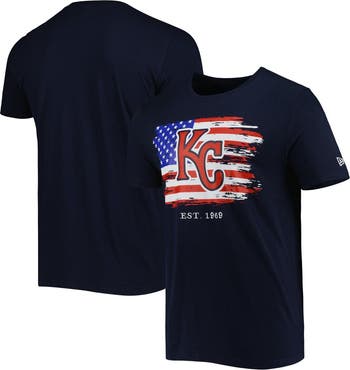 Celebrate your Kansas City Royals fandom with the Men's New Era Navy Kansas City Royals 4th of July Jersey T-Shirt. This patriotic tee features screen print graphics with distressed details, capturing the spirit of the 4th of July and your unwavering support for the Kansas City Royals. Made from soft cotton, this crew neck t-shirt offers comfort and style, making it the perfect choice for game day or any day you want to show your Royals pride.