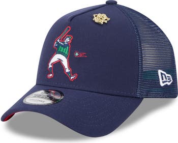 New Era partners with Big League Chew to bring Milwaukee Brewers fans a fun new hat for game day.The A-Frame 9FORTY Adjustable Trucker Hat features a unique design, with a high-profile pinched shape thanks to the merged front crown panels and mesh mid and rear panels for added breathability. With embroidered graphics that pop with raised details, a contrast-color undervisor and a Big League Chew pin, this hat is sure to add the perfect stylish finish to any outfit.