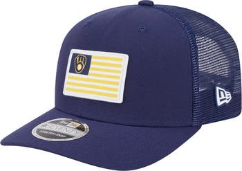Men's New Era Navy Milwaukee Brewers Flag 9SEVENTY Stretch-Snap Hat