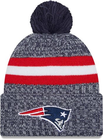Men's New Era Navy New England Patriots 2023 Sideline Cuffed Knit Hat With Pom
