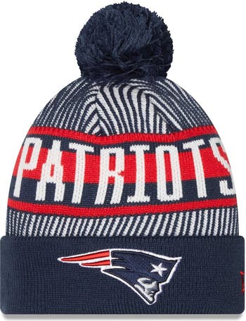 Men's New Era Navy New England Patriots Striped Cuffed Knit Hat with Pom