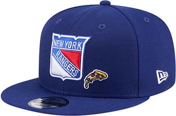 Showcase your die-hard New York Rangers loyalty with this 9FIFTY Snapback Hat from New Era.Showcasing the iconic New York Rangers logo with a fun pizza graphic, this snapback is a statement piece that effortlessly blends team pride with modern style. The structured fit and flat bill provide a classic look, making it the perfect accessory for any die-hard New York Rangers fan looking to stand out from the crowd.