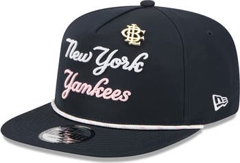 New Era partners with Big League Chew to bring New York Yankees fans a fun new hat for game day.This Golfer Snapback Hat features a retro look with its pinched crown and flat visor, reminiscent of classic snapbacks from the '80s and '90s. The five-panel construction, complete with mid and rear eyelets, ensures breathability, while the rope embellishment at the visor and Big League Chew pin add a touch of vintage charm.