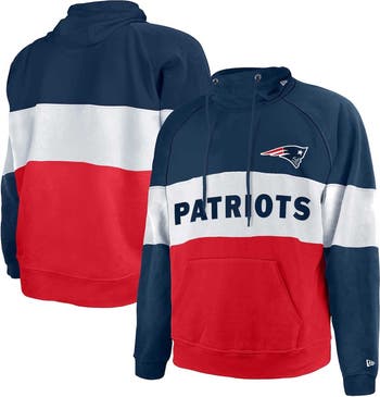 The New Era Navy/Red New England Patriots Big & Tall Current Team Colorblock Fleece Raglan Pullover Hoodie is the perfect way to show your support for the New England Patriots. Made from a soft and comfortable cotton and polyester blend, this hoodie features a colorblock design and a fleece lining to keep you warm on chilly game days. The front pouch pocket is perfect for storing your essentials, and the screen print graphics proudly display your New England Patriots pride. Whether you're cheering from the stands or just relaxing at home, this hoodie is the perfect way to show your support for the New England Patriots.