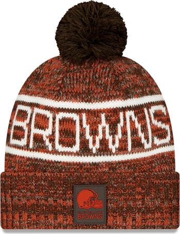Men's New Era Orange Cleveland Browns 2025 Sideline Cold Weather Cuffed Knit Hat with Pom