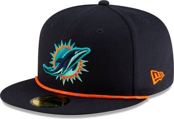 Gear up for the next chapter in the storied rivalries between the Miami Dolphins and their divisional foes with this Sideline Rope 59FIFTY Fitted Hat. The 59FIFTY, the originator of the true fitted cap, boasts a classic six-panel construction with breathable eyelets for ultimate comfort. Embroidered graphics with raised details proudly display the Miami Dolphins logo, while a unique rope embellishment across the visor adds a touch of vintage flair.