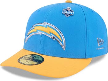 Celebrate the future of Los Angeles Chargers football with this 2026 NFL Draft Pre-Curved 59FIFTY Fitted Hat from New Era. Featuring a structured fit and high crown, this hat delivers a classic, confident look, while the pre-curved visor adds a street-ready edge. An embroidered Los Angeles Chargers logo with a metallic-effect outline on the crown and a removable 2026 NFL Draft pin make this piece both a collector's item and an eye-catching display of team spirit. The team-themed lining on the front panels provides a luxurious touch, ensuring you're always winning in style.