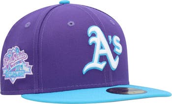 Add a twist to your normal Oakland Athletics gear by grabbing this Vice 59FIFTY hat from New Era. It features the Oakland Athletics logo on the crown, unique colors and a commemorative side patch to showcase your die-hard fandom. Plus, the fitted construction keeps this cap snug and secure, while the flat bill and high crown give it a stylish look.