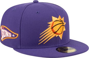 Throw it back with this Phoenix Suns Throwback Pennant 59FIFTY Fitted Hat from New Era. This hat boasts the iconic New Era 59FIFTY fitted design, complete with a high crown and flat bill for a classic look. With intricate team graphics embroidered in raised detail on the front crown and right side panel, this hat is a must-have for any Suns fan looking to rep their team in style.