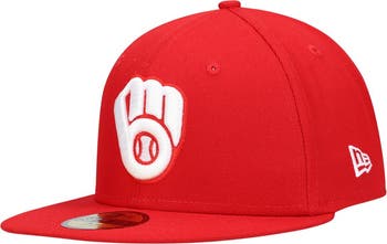 Men's New Era Red Milwaukee Brewers White Logo 59FIFTY Fitted Hat
