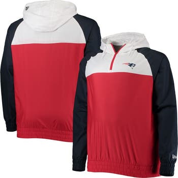 Men's New Era Red/Navy New England Patriots Big & Tall League Raglan Quarter-Zip Hoodie