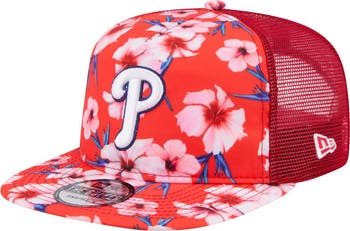 Take your Philadelphia Phillies fandom on an adventure with this New Era Adventure Pattern Golfer Trucker Snapback Hat. The Golfer silhouette gives this cap a retro look and feel thanks to its semi-structured build, pinched crown and flat visor. With an embroidered Philadelphia Phillies logo and sublimated floral print, this cap is as stylish as it is comfortable.